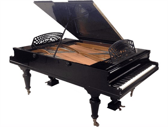 普雷耶第四代掌门人古斯塔夫.李雍(Gustave Lyon)经过深入的传声学研究,于1890年创造出了令人叹为观止的双人钢琴,这也是钢琴制造史上的突破和创举。所谓双人钢琴,即将两台三角钢琴合二为一,配备两个面对面的键盘,框架设计新颖独特,其上安装两块一模一样、头脚相对的琴弦板,各自备有专门的琴马支架,共用一块音板。